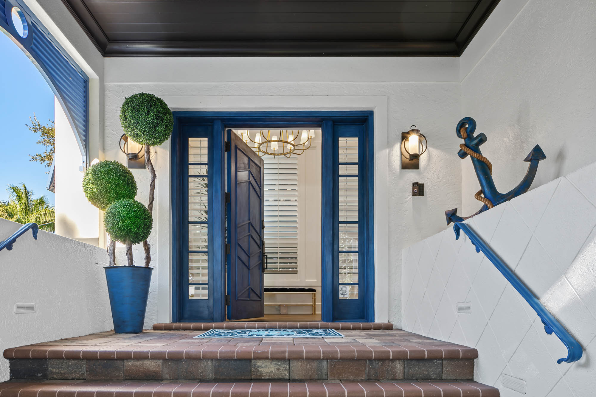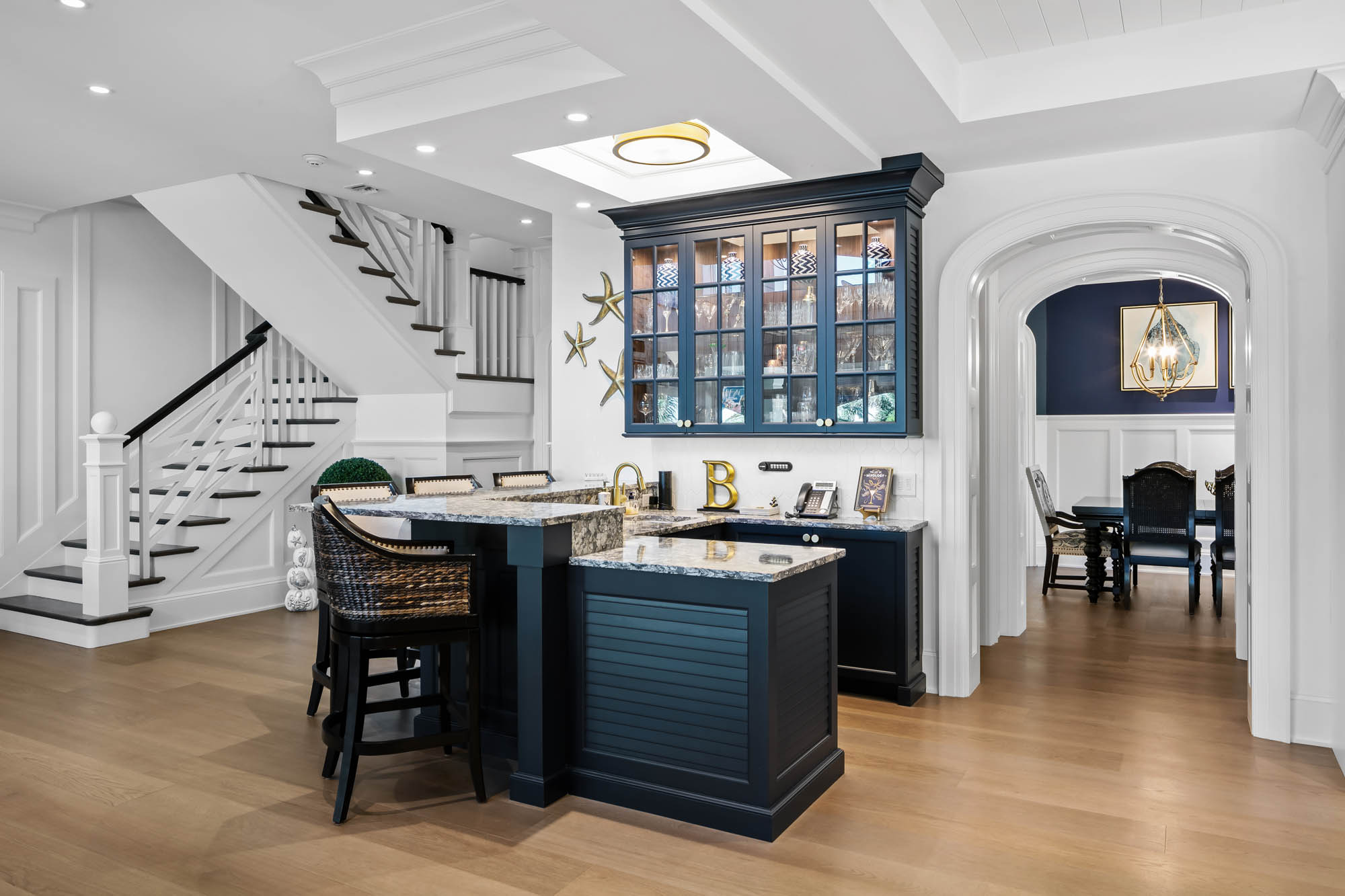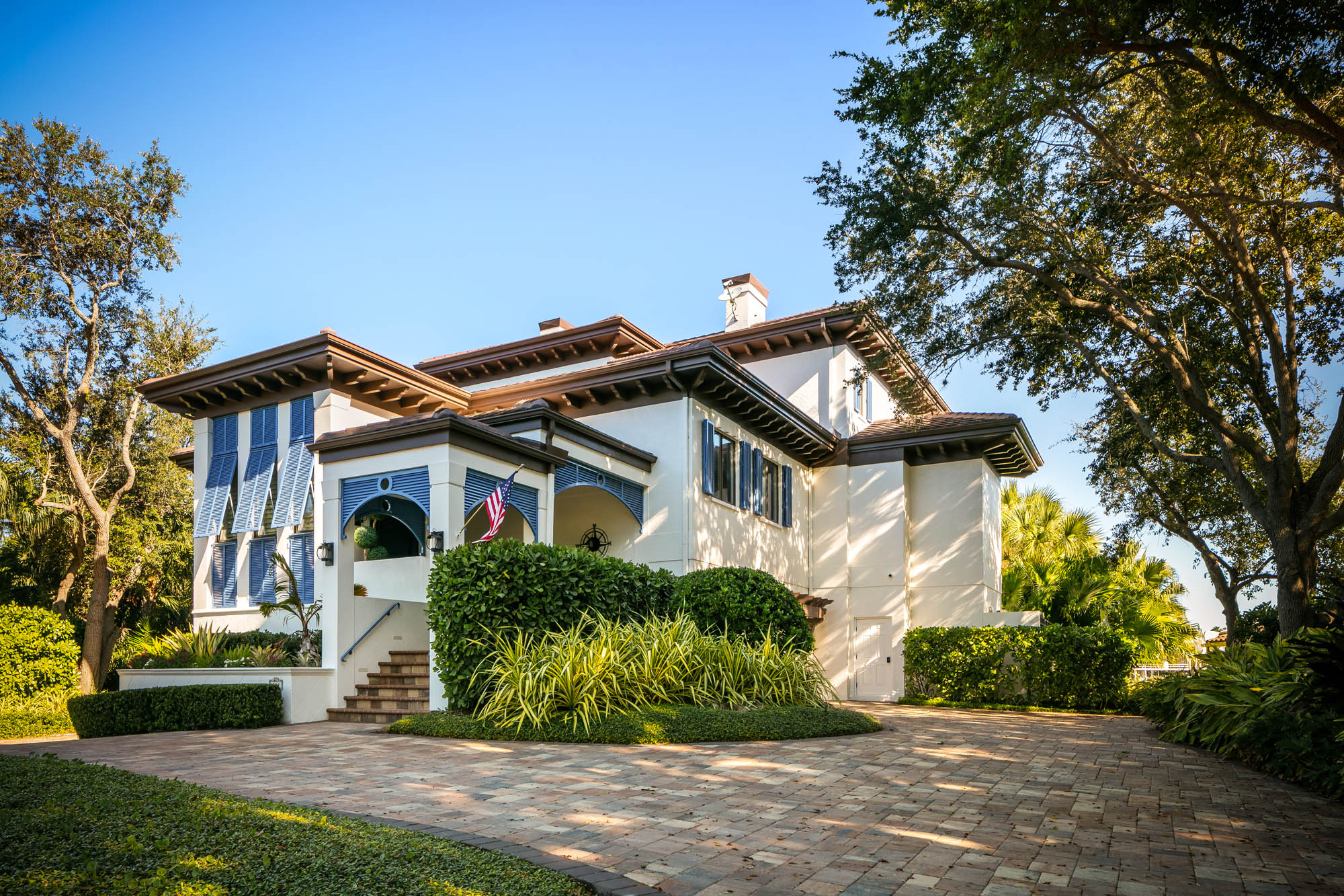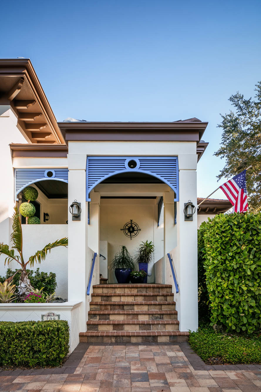 Bay Island Blu is a waterfront residence originally designed by CMSA and later reimagined into a refined West Indies–inspired home. The renovation introduced warmer materials and layered detailing while preserving expansive upper-level views. The result is a relaxed coastal residence shaped by architectural continuity.