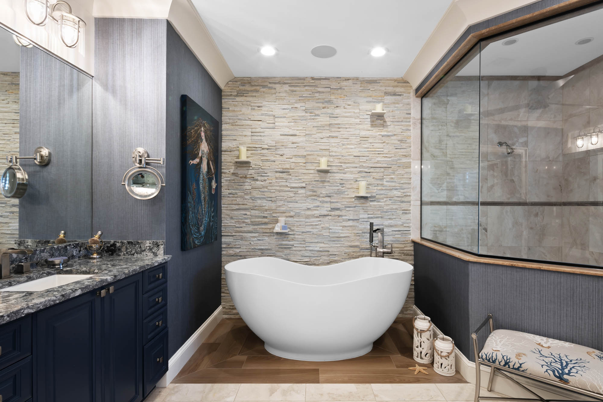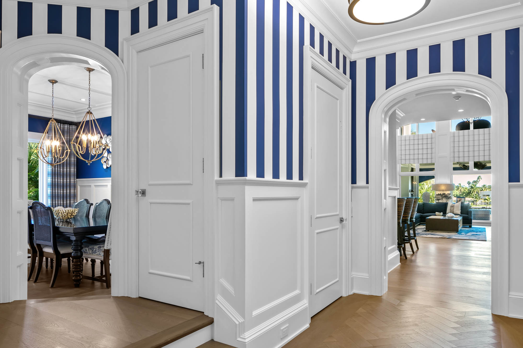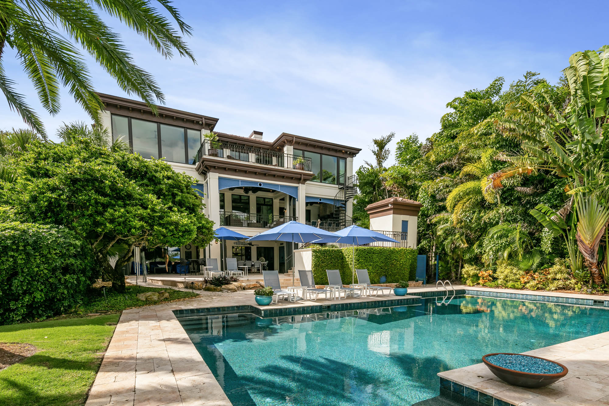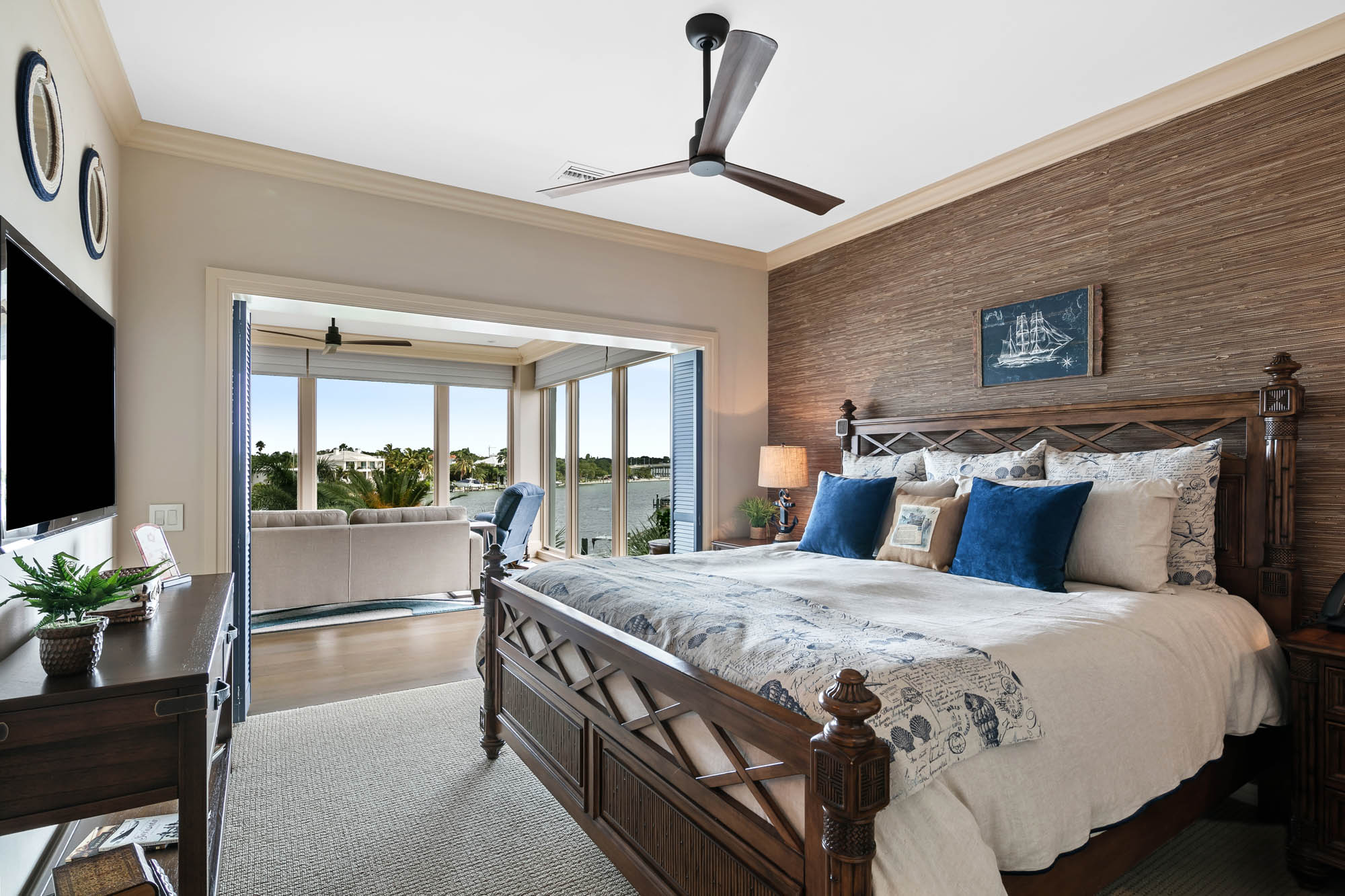 Bay Island Blu is a waterfront residence originally designed by CMSA and later reimagined into a refined West Indies–inspired home. The renovation introduced warmer materials and layered detailing while preserving expansive upper-level views. The result is a relaxed coastal residence shaped by architectural continuity.