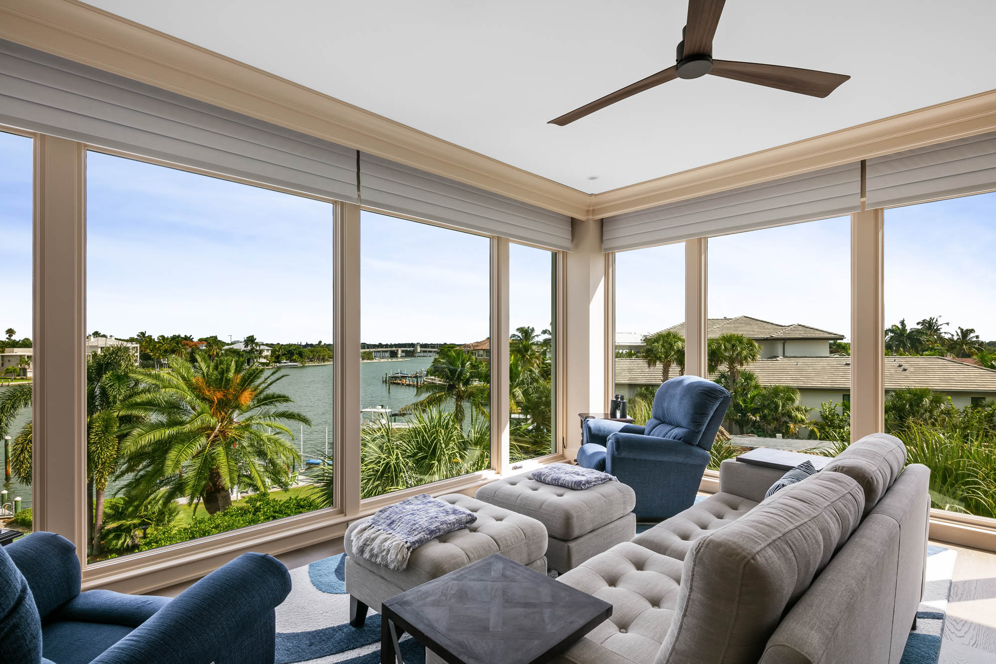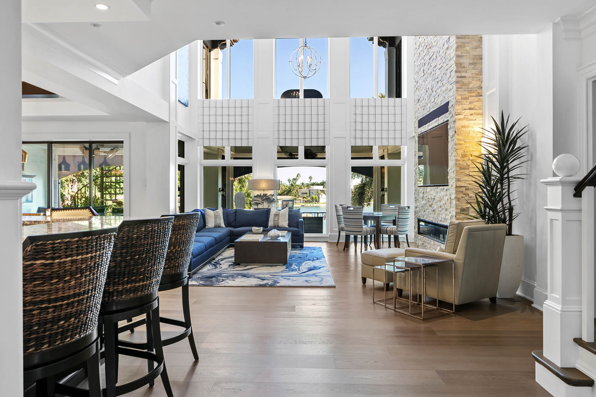 Bay Island Blu is a Sarasota waterfront home renovation originally designed by CMSA and later reimagined into a refined coastal residence. Over time, the home was thoughtfully re-envisioned by the firm, transforming both its interior and exterior into a refined West Indies–inspired residence. The renovation preserved the home’s strong architectural framework while introducing warmer materials, layered detailing, and a more relaxed coastal expression. Expansive windows and elevated living spaces continue to frame long views across the water, reinforcing the home’s relationship to its island setting. Guided through both its original conception and later transformation, Bay Island Blu reflects continuity in design thinking while allowing the architecture to evolve in response to place, lifestyle, and time.
