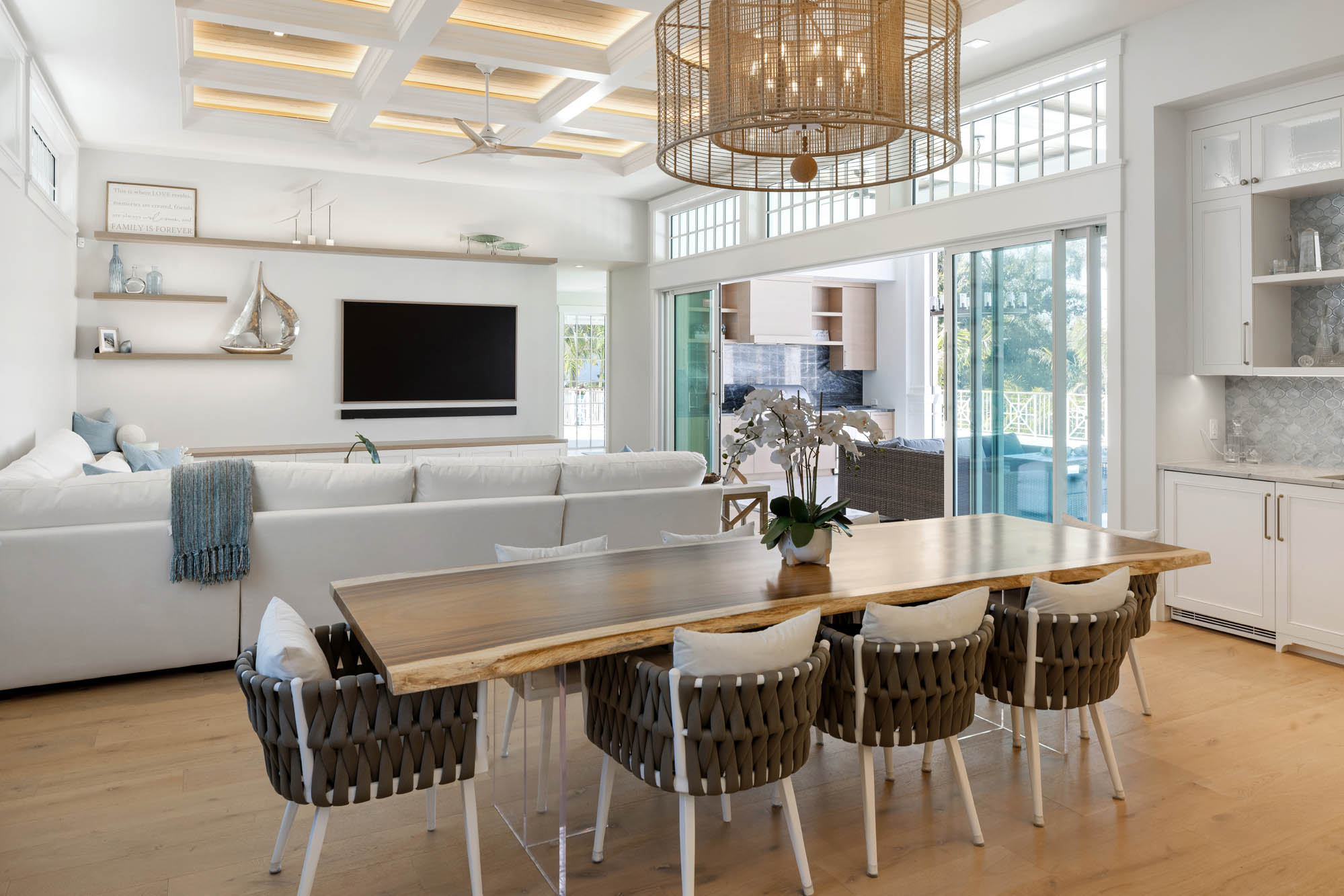 Solara—also known as Lido Rose—expresses a refined interpretation of West Indies architecture tailored for Sarasota’s coastal lifestyle. Designed as a 4,300-square-foot custom residence, the home balances traditional island forms with light-filled, contemporary interiors. Crisp white façades, expressive wood detailing, and symmetrical massing establish a calm architectural rhythm. Inside, layered ceilings, warm natural textures, and expansive glass openings create a seamless connection between interior living spaces and the pool terrace, reinforcing a sense of ease and coastal continuity. Featured in Home & Design Magazine (2024) and honored at the 2025 SEBC Aurora Awards for design excellence.